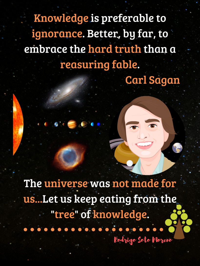 Better the hard truth than a reasuring fable September 17, 2019September 17, 2019 rrsm Spread the love Knowledge is preferable to ignorance. Better, by far, to embrace the hard truth than a reasuring fable. Carl Sagan The universe was not made for us…Let us keep eating from the “tree” of knowledge.