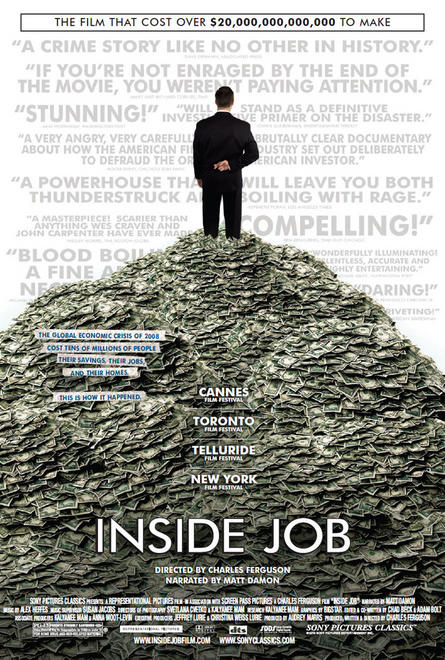 El mismo documental, Inside Job, señala que la crisis no fue accidental sino que fue creada por una industria fuera de control y nuevamente de la avaricia desmedida de ciertos seres humanos, que no les importó dejar sin nada a millones de personas a costa de su riqueza enfermiza, misma que se transforma en adicción.