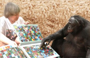 En este tenor, me gustaría compartir algo del artículo de Jeffrey Kluger, titulado: “Inside the Minds of Animals” publicado en la revista TIME. En ese escrito, Kluger, se menciona el caso del bonobo llamado “Kanzi”, quien desde su cautiverio desde pequeño, ha sido enseñado a comunicarse por medio de unas hojas laminadas que contienen una serie de símbolos, mismos que agrupan las 384 palabras que él ha aprendido y es capaz de usar con el objetivo de construir oraciones con el simple hecho de apuntar a las mismas. Kluger también nos resalta que Kanzi cuenta con palabras que no son solamente adjetivos o sustantivos, sino que existen verbos y preposiciones.