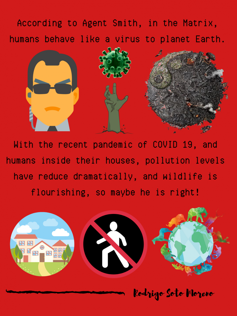 According to Agent Smith, in the Matrix, humans behave like a virus to planet Earth. With the recent pandemic of COVID 19, and humans inside their houses, pollution levels have reduce dramatically, and wildlife is flourishing, so maybe he is right!