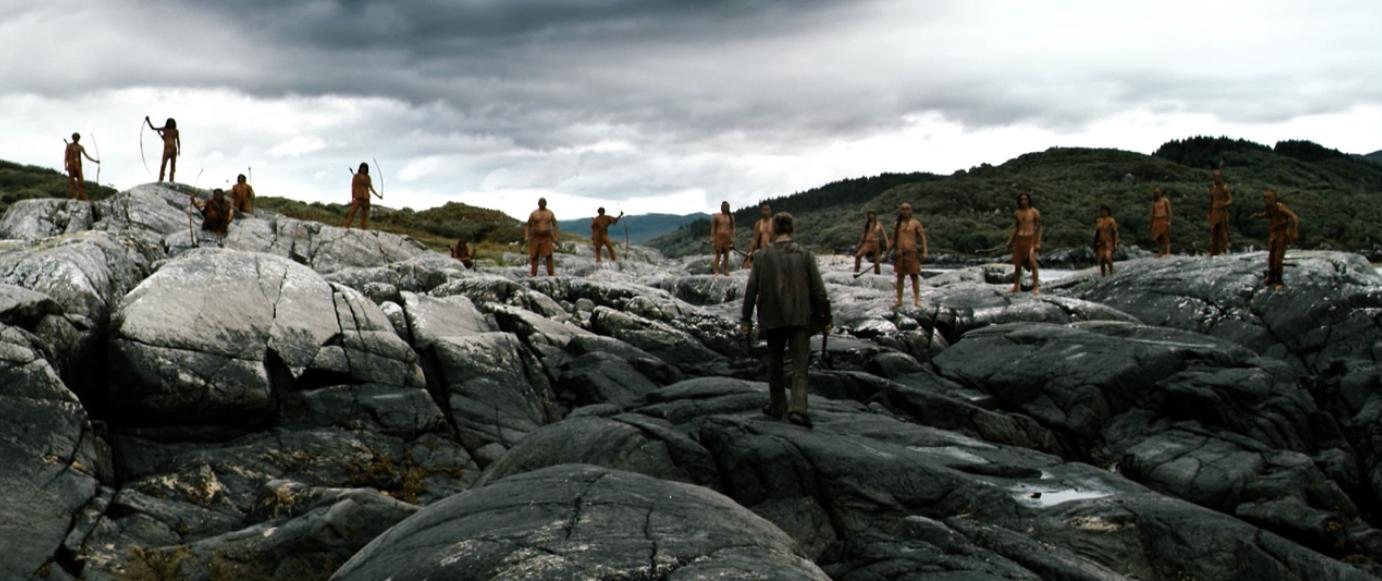 Pero Un Ojo sabía su tarea y no era otra que mostrarles a esos hombres de “fe” el camino seguro cuando se enfrentan a él por las armas, siendo ningún otro más que encontrarse de frente con su supuesto creador para decirle que habían fallado y que el campeón nórdico no iba a ser doblegado por ninguna fuerza sobrenatural representada en simples hombres. Así que midiendo a la “presa” o evangelizador más débil, optó por arremeter contra el que tenía fracturada la nariz e invitándolo a dar otro golpe sin efecto, esquivó la ofensiva de éste, quien sangraba y respiraba con dificultad, enseñándole cómo causar un lesión mortal, al aventarle su hacha y ser certero en la intersección de líneas que tenía en el pecho, doblegándolo inmediatamente. Un Ojo jaló de nueva cuenta a Blonde, quien ya se volvía a ocultar en su espalda, y tomando la espada del evangelizador derrotado, se dirigió con mucha seguridad hacia el que quedaba de pie, quien intentó defenderse pero solamente alcanzó a bloquear dos espadazos, pues el tercero se hundió en su estómago causándole la muerte. Acto terminado, Un Ojo, tiró la espada y recogió su hacha y cuchillo y volviendo a colocar a Blonde a su espalda, marcando de nueva cuenta su territorio temporal.