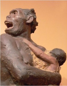 Resulta interesante observar, como se presenta en la figura 1, la variación entre el tamaño de los cerebros de las especies mencionadas al nacer y al llegar a su etapa adulta. Por ejemplo, Campillo Álvarez señala que el chimpancé nace con 128 centímetros cúbicos de cerebro; es decir, un 32.82% del tamaño que adquiere al llegar a la etapa adulta. En el caso de Lucy, lo recién nacidos tenían un cerebro de 162 centímetros cúbicos; es decir, un 39.03% del tamaño que alcanza a llegar a la etapa adulta. En nuestra situación actual, nos topamos con que el cerebro de un bebe es solamente el 28.44% del tamaño que alcanza en la madurez.