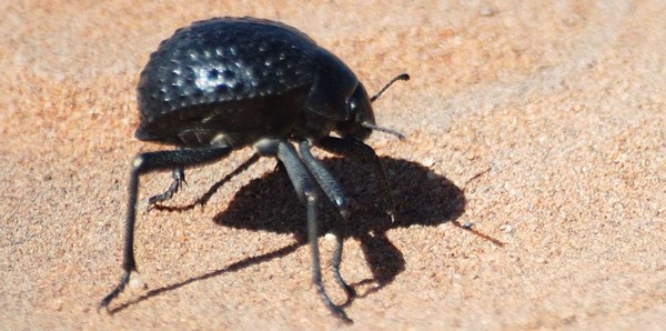 Fue entonces que el insecto, conocido como “stenocara gracilipes”, extendiera sus alas y poner su cuerpo de tal forma que al hacer este proceso lograba condensar las gotas provenientes de los vientos antes mencionados y que al paso de un breve lapso, esas gotas crecen hasta que por su propio peso caían y descienden suculentamente a la boca de nuestro creativo amigo insecto.