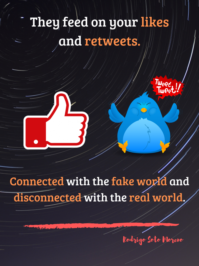 They feed on your likes and retweets September 2, 2019September 2, 2019 rrsm Spread the love Connected with the fake world and disconnected with the real world.